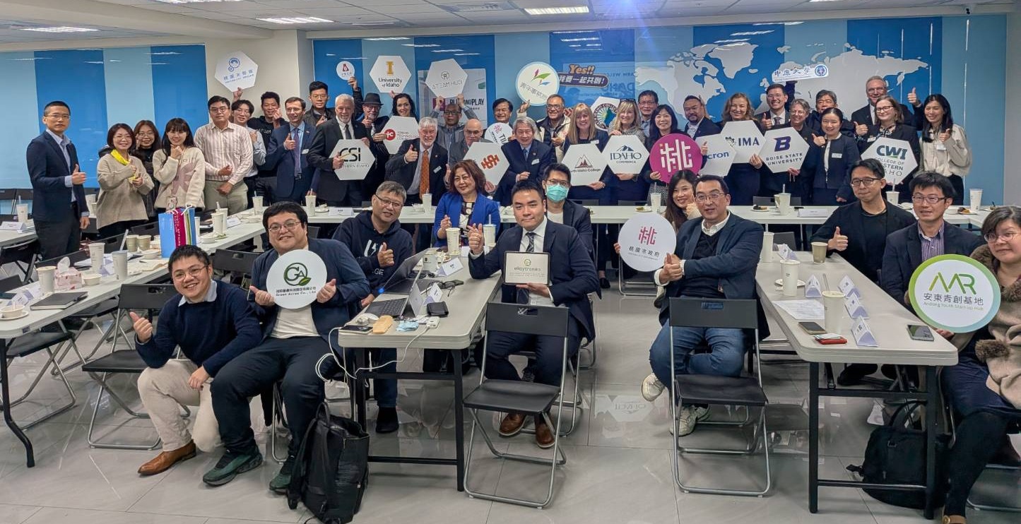 圖說:美國愛達荷州商業廳、美光集團及愛達荷州多家學研單位、ATH執行董事黃以正與桃園市青年局侯佳齡局長於天際線新創基地合影。業者提供