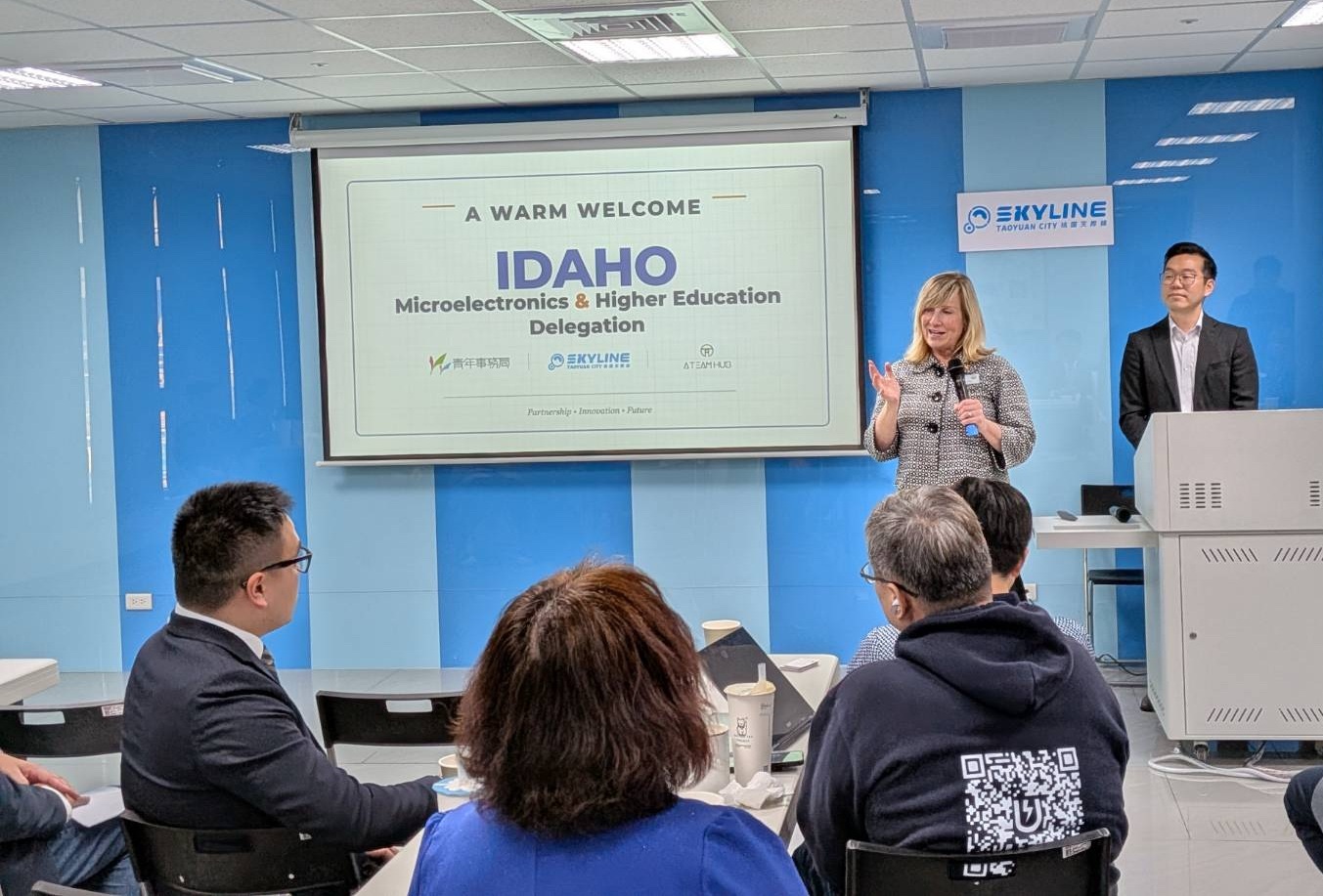 桃園市青年局侯佳齡局長特別蒞臨並指出,桃園市在張善政市長的規劃下,積極協助產業到青創的國際化。青年局積極培育市內青年、學生之國際觀以及實際的國際業務合作。室內天際線基地是青年與海外鏈結合作的匯聚地,境內亦有中央、中原、元智等頂尖大學,很高興美國愛達荷州科技、教育以及國際育成夥伴來交流,期盼帶入更多國際新創生態圈機構來桃園,與青年、創業家、科技人才互動並建立持續性的合作。