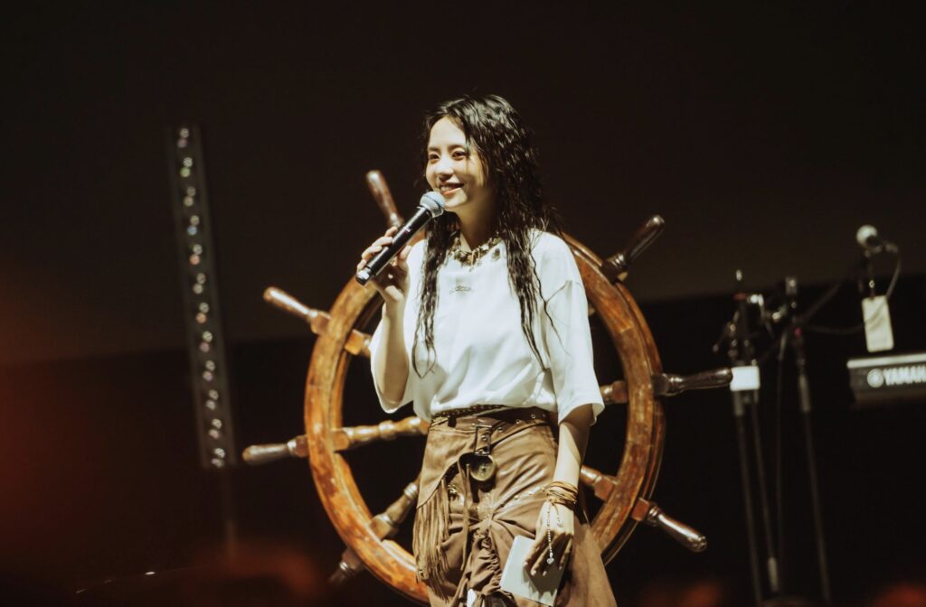 163braces 吳朵芸《海螺記:造船計劃》巡迴演唱會去年自家鄉高雄啟航,一路航向香港、北京、上海、南京、深圳、廣州等城市,每一站演出內容皆不盡相同,象徵與歌迷一步步「造船」,逐站拼湊出完整的巡演藍圖。昨(30 日)巡演集大成,班師回朝唱回台北 Zepp New Taipei, 163braces 以「海盜美學」全新造型登場,視覺風格令人眼睛一亮。她以 18 世紀海盜 × 波西米亞混搭 為主軸,身穿馬甲、麂皮裙、皮革長外套與蕾絲褲襪層層堆疊,打造出帶點頹廢又華麗的搖滾氣息。不只是主唱,全場樂手也一致換上海盜裝束,現場宛如巨型海盜船,163braces 興奮表示:「這是我的圓夢計劃,歡迎大家與我一起展開神鬼奇航!」樂迷們愛死《海螺記:造船計劃》,讚不絕口大讚台版「神鬼奇航」當之無愧!