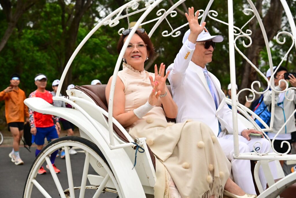 首屆會長盃半程馬拉松路跑 28日在東海大學地標路思義教堂前廣場盛大登場,現場吸引超過1500位校內外師生與校友共襄盛舉。主辦人游志豪與夫人在眾人注目與掌聲中,搭乘華麗的名駒馬車緩緩駛入會場,象徵「駿馬奔騰、公益同行」的美好寓意。