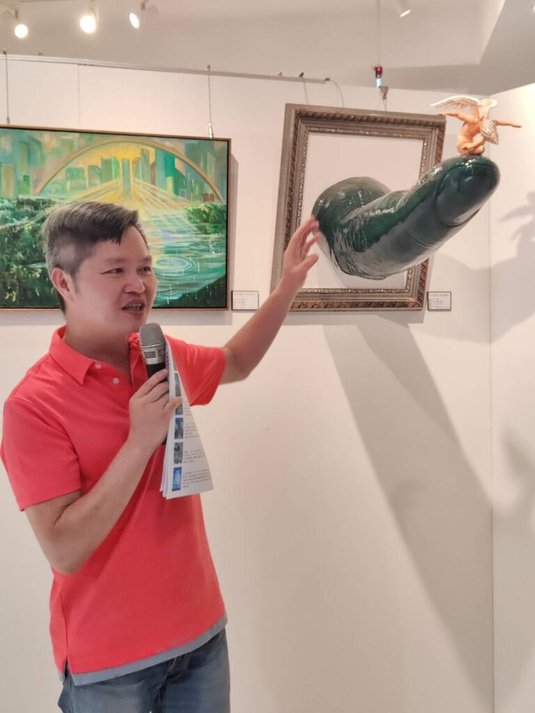 圖說:台藝大造形藝術研究所畢業的簡俊成老師喜愛爬山,專長是雕塑、複合媒材繪畫、公共藝術、裝置藝術,以蝸牛人為核心符號具象化現代人無法擺脫的生存壓力與體制枷鎖。(圖/台北設計建材中心提供)