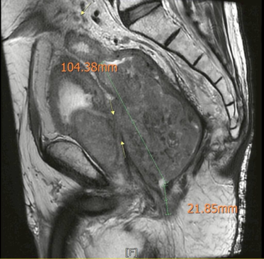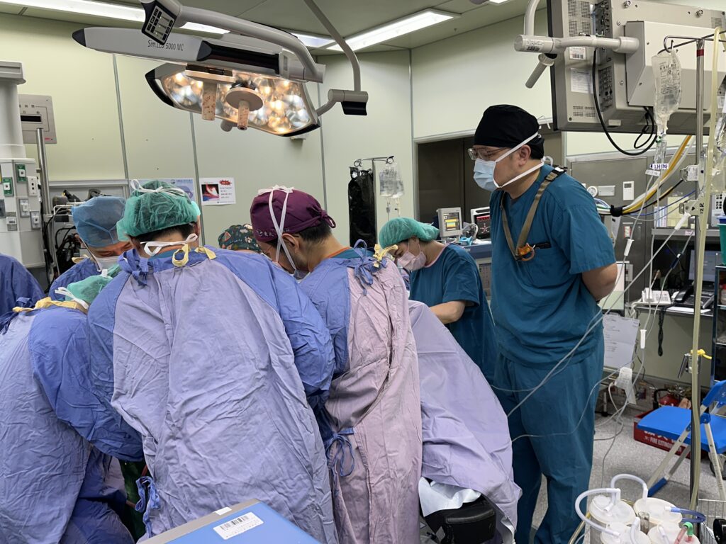 手術當天,手術團隊進行了骨盆複雜腫瘤清除手術(Pelvic Exenteration),手術內容包括:全直腸與肛門切除、膀胱與攝腺切除、骨盆腔淋巴結清除、部分薦骨神經切除、會陰部受侵犯軟組織廣泛切除、建立永久人工肛門與泌尿造口、整形外科皮瓣重建會陰部傷口、這是一場非常大型且複雜的手術,但手術順利完成。