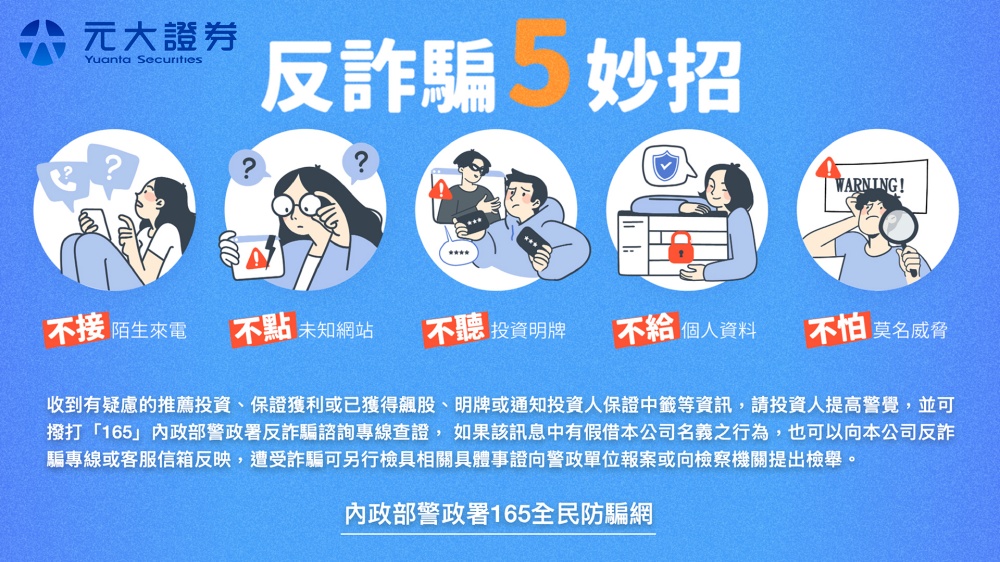 備受台灣股民推薦的「投資先生APP」,為投資人打造了更安全、更值得信任的行動交易環境,並以此榮獲2026財訊財富管理大獎「金融服務創新獎」肯定。展望未來,元大證券也將利用AI與大數據技術,從「識別真偽」升級為「主動攔截」,即時阻斷可疑交易模式,實踐守護投資人資產的安全承諾。