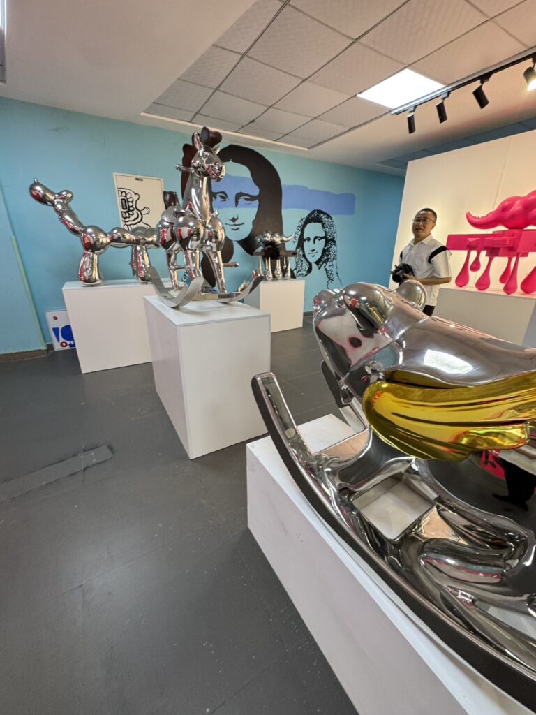 現場創作陣容堅強,作品涵蓋多元主題與形式,包括徐瑞〈飛舞的蒲公英〉、顧文華〈星光〉、馮開蘭〈上上簽〉、陳純純〈飛翔〉、邱世球與陳純純〈葉子的語言〉、齊開權〈都市叢林〉、陳炳臣與李剛〈星光〉、廖迎晰與鄭皓仁〈希望之牆〉、廖迎晰〈花好月圓時光隧道〉、席拿〈藝術走廊記憶之眼〉、徐兆慧〈魔幻天空城〉、農夫〈星光天地〉、陳焜城〈堆疊・豐年祭〉等,以及中庭集體創作〈同舟共濟〉,融合東莞在地與台灣文化意象,展現兩岸藝術交融的當代表達。