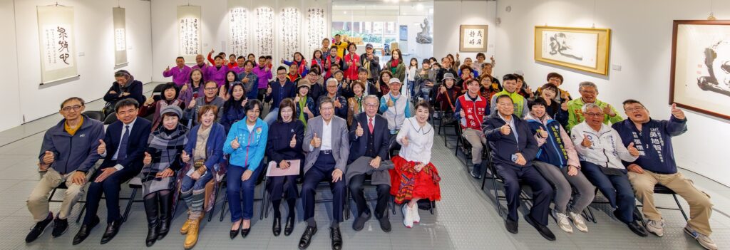 【記者蔡富丞/新竹報導】臺灣書法名家張炳煌教授「承古開新、筆墨共融—書法暨e筆作品展」,今(27)日在新竹縣政府文化局美術館101展廳正式開幕。開幕活動由銅好樂團三重奏揭幕,聲樂家簡文秀亦特別到場,現場獻唱〈又見炊煙〉,並結合張炳煌即席書法揮毫,展現書法、音樂與科技跨域融合的藝術成果。
