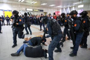 【民眾網編輯方笙楠臺北報導】為因應「1219事件」,並全面檢視重要交通樞紐面對突發治安事件之應變作為,2月5日於捷運三重國小(新北市)及捷運大橋頭等站(臺北市)辦理跨縣市聯合演練,臺北市政府警察局針對跨域捷運及地下空間可能發生之重大暴力事件,實施完整應變流程測試。