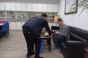 【民眾網編輯方笙楠臺北報導】115年2月5日晚間,臺北市少年警察隊偵查佐胡曉鍾、張俊傑於一樓擔服值班勤務時,發現駐地門口突有一名身形壯碩、全身深色衣著之男子獨自在外徘徊、視線往內凝望,神色明顯可疑,胡、張2員察覺此異狀,基於勤務警覺與駐地安全,不敢輕忽,隨即攜帶秘錄器、防身噴霧等應勤裝備步出查問。