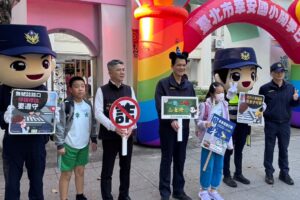 臺北市大安區轄內計有15所國民小學,大安分局警力結合校方導護老師、志工家長及警衛人員,共同守護孩子上下學安全。特別的是,員警還穿上超人氣「警察寶寶」大頭裝現身校門口,親切與學童擊掌、道早安,現場氣氛熱絡,不少小朋友主動合影,讓嚴肅的交通安全宣導變得生動又有趣,活動中,員警透過輕鬆互動方式,向學童宣導「反毒、識詐、防制校園霸凌」觀念,同時提醒過馬路要牢記「停、看、聽、想」四字口訣,並做到「左看、右看、再左看」,即使綠燈也要確認無來車再通行,從小建立正確交通安全意識。