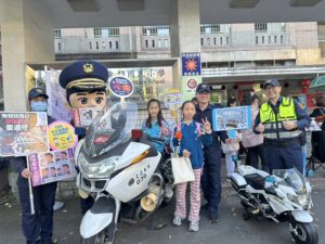 【民眾網編輯方笙楠臺北報導】2月23日為寒假後開學第一天,適逢通勤尖峰及家長接送孩童上學時段,中正第一分局評估校園周邊車流將明顯增加,為守護國中、小學生上學安全,規劃轄內校園周邊交通疏導與安全維護勤務,並由分局長陳瑞基、副分局長翁麒豪親自率隊前往東門國小執行護童勤務,且因應東門國小於校門口安排管弦樂團表演,配合辦理「交通安全暨犯罪預防宣導活動」,出動警察大頭娃娃及大、小警用重機到場,吸引學童目光,另外中正第一分局同仁身兼家長身分攜手陪伴小孩開心上學,也是一大亮點,分局長、副分局長更在現場發放精美福袋及宣導小物,提醒師生及家長注意交通及居家安全,並同步推廣反詐騙與婦幼安全觀念。