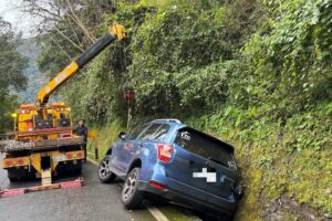 地方山區遊玩車陷山溝  天祥警即刻救援助脫困