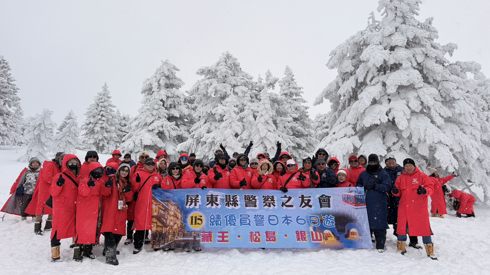 此次參觀團由屏東縣警察局副局長賴吉雄率隊,警友會理事長張天明、副理事長鄭志屏及潮州辦事處主任李慧華等人全程陪同;行程橫跨日本東北多處秘境,最令團員驚喜的是,在走訪被譽為冬季奇景的「藏王樹冰」時,天公作美,幸運遇上漫天瑞雪,山頭銀白覆蓋的絕美景象,讓大夥直呼:「這趟旅程真的太值得了!」