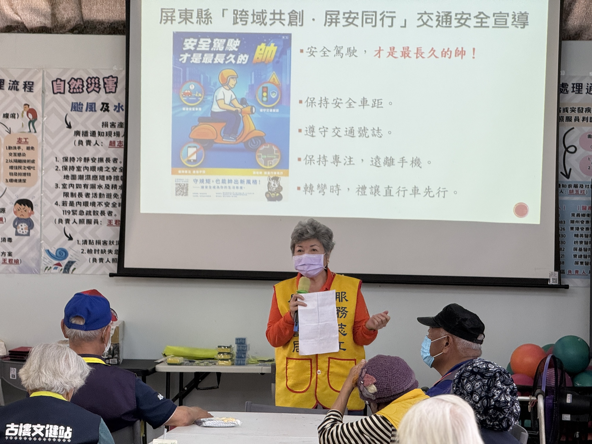 潮州分局警察志工輪番上陣,以親切自然的方式與民眾互動,志工夥伴們用自身的生活經驗,分享實際案例,從行人安全、機車防禦駕駛,到長者用路注意事項等面向,逐一說明交通潛在風險與正確應對方式。在談到「保持安全距離」的重要性時,志工李素瑛以自身經驗幽默分享,表示每當搭乘家人駕駛的車輛,若發現與前車距離過近,自己也會不自覺地跟著踩起「空氣煞車」,生動比喻讓現場民眾會心一笑。