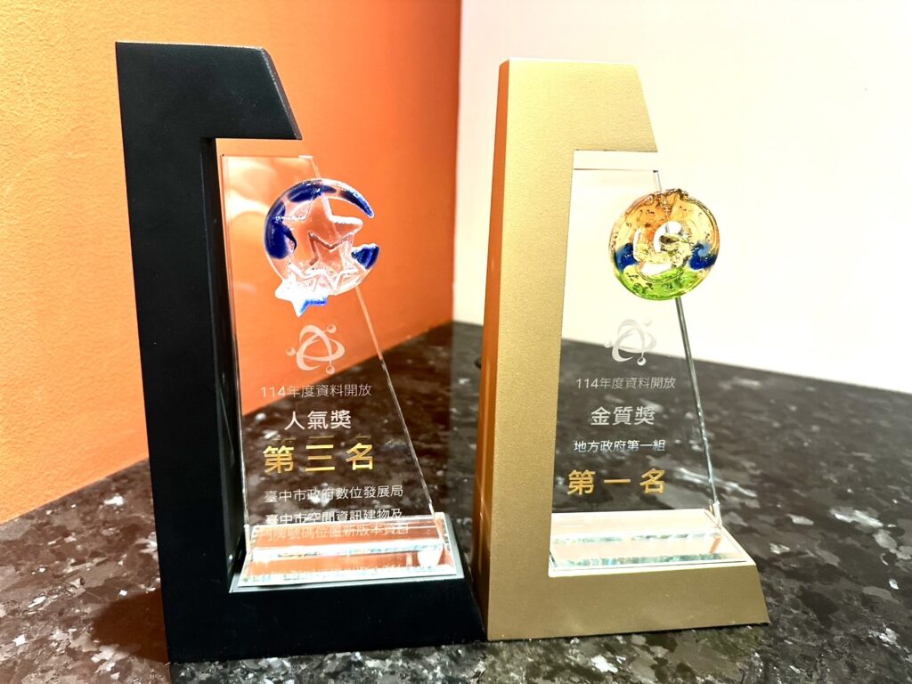 《圖說》行政院114年度開放資料評比,台中榮獲金質獎、人氣獎雙料獎項殊榮。