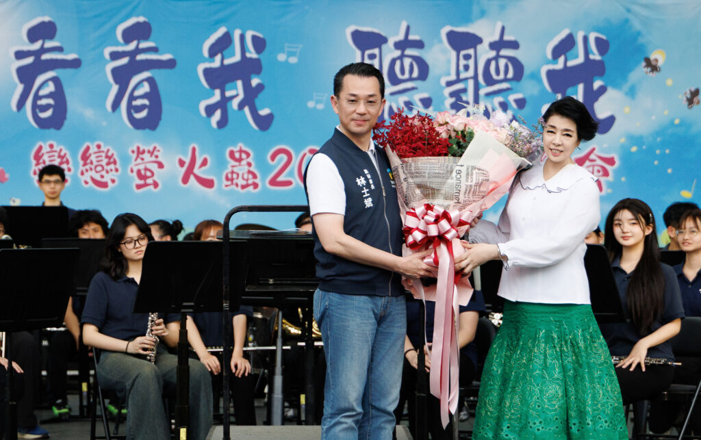 圖說:臺北市政府林士斌副秘書長獻花給製作人聲樂家簡文秀