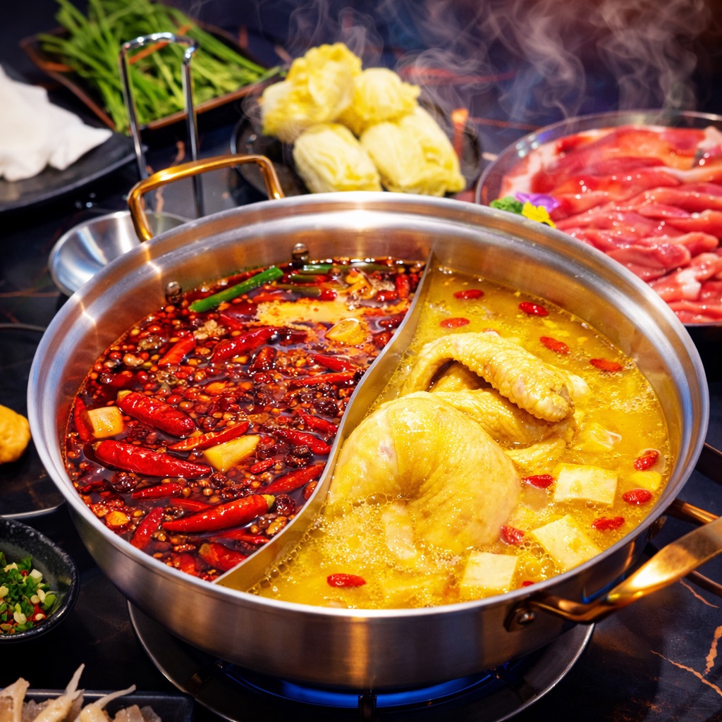 菜單方面則主打三大湯底,包括招牌麻辣水湯、加入燕窩與花膠的花膠雞湯,以及清爽養生的菌湯,並搭配屠場鮮毛肚、九尺鵝腸、黃喉、竹笙蝦滑與特色滷牛舌等多樣食材。