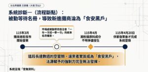 產發局長陳俊安坦言,食安問題才是首要任務!將要求市場處針對轄管場域進行全面盤點,核對現有攤商名冊與現況是否吻合,若有疏漏必須立即補正;未來也將廢除「一年交一次」或「一季交一次」的消極做法,要求市場處檢討 SOP,落實新進攤商「進場即登錄、即時上網公告」,確保食安資訊不再有空窗。