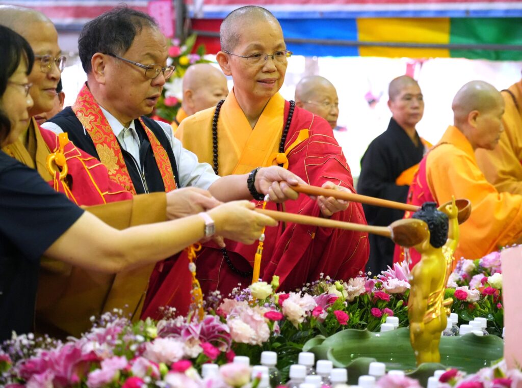 台中市政府民政局長吳世瑋代表市長盧秀燕出席大典共沐佛恩,祈願台中市運昌隆、社會祥和繁榮、市民幸福安康。期盼藉此洗滌眾生煩惱,啟發智慧與慈悲心。