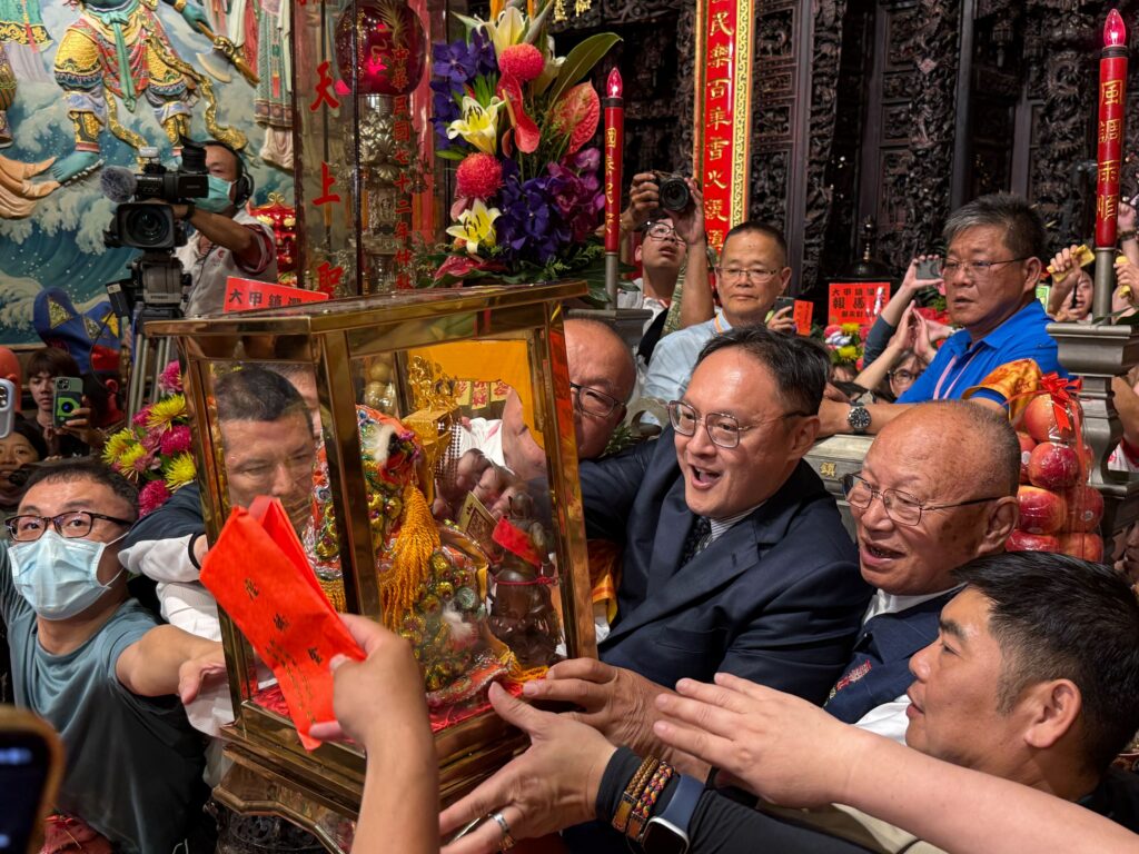 台中市副市長鄭照新代表市長盧秀燕,與廣大信眾虔誠恭迎媽祖安座,感謝媽祖慈悲護佑地方、消災解厄,並祈求媽祖及眾神庇佑國泰民安、風調雨順。