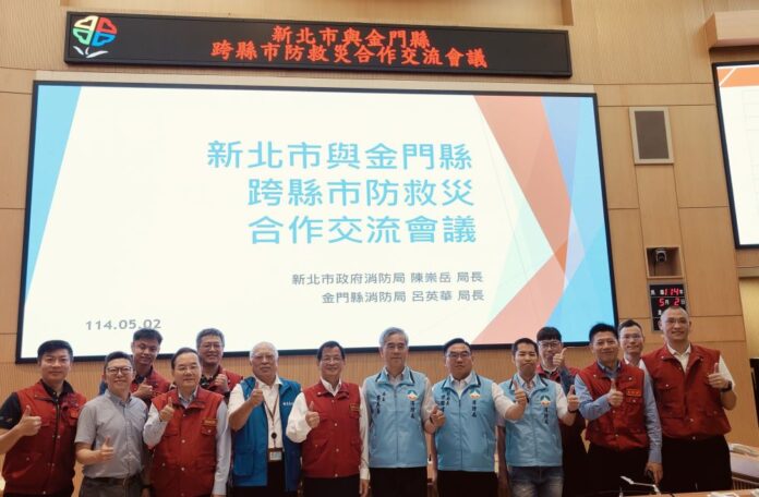 【民眾新聞葉柏成新北報導】鑑於全球氣候變遷,加上台灣位於板塊交界地震帶上,大規模及複合型災害帶來的威脅影響是災害防救工作上重要課題,為深化跨縣市間災害防救相互支援能力及整備應變作為,金門縣消防局長呂英華局長今〈2〉日率隊拜訪新北市,新北消陳崇岳局長親自接待並主持跨縣市防救災合作交流會議,共同討論防救災合作議題。
