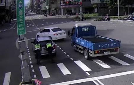 民權派出所警員張家維、王俊奇二人趕往到場,先將巡邏車停於事故車後方警戒,並確認黃女能將車輛排入空檔後,遂合力將車輛推移至安全路邊停放,化解交通壅塞風險;黃女對警方協助衷心感謝。