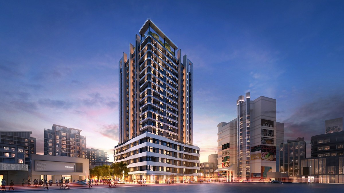 圖 /「寶亞鴻公舘」坐落鴻金寶核心,6字頭卡位未來三捷樞紐。圖為3D外觀示意圖。