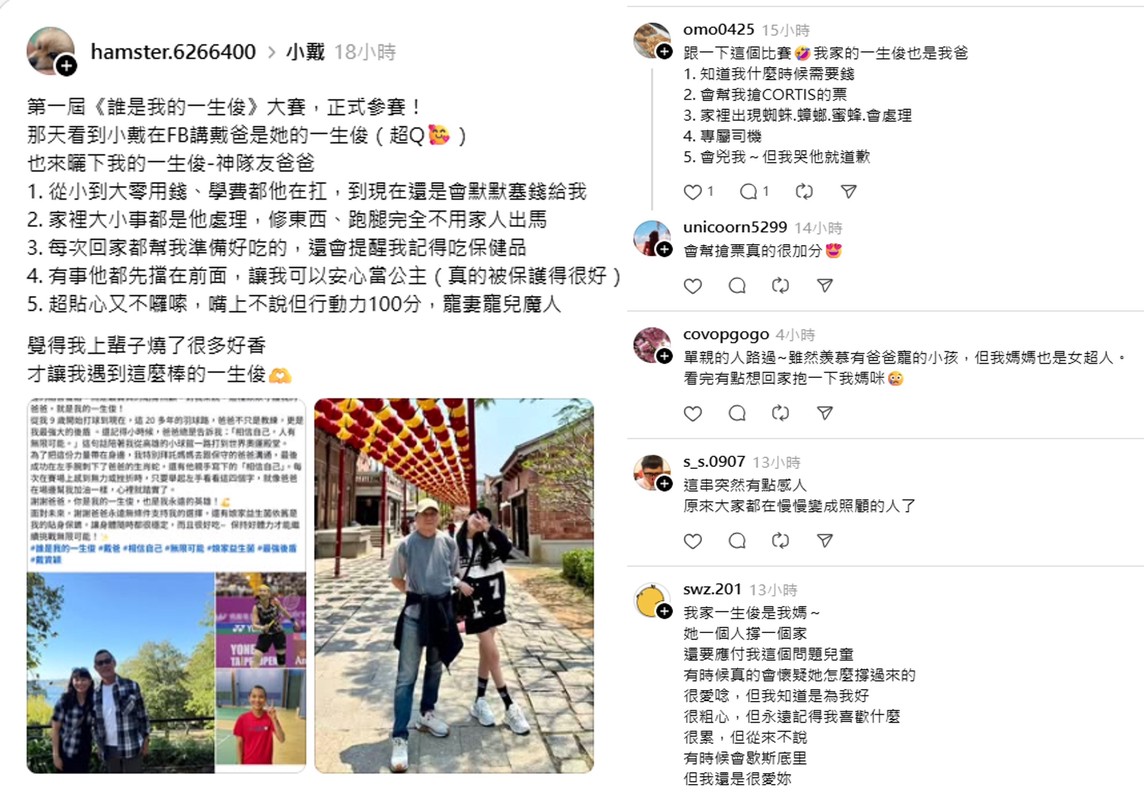 戴資穎的感性分享也觸動了社群話題,Threads 上出現了《誰是我的一生俊》的串連活動,網友紛紛接龍分享自己生命中的「神隊友」。從默默打理家事並提醒家人補充營養的父親,到 Dcard 上被推舉為療癒之首的毛小孩,「一生俊」一詞迅速演變為網友對「穩定陪伴者」的代名詞。這場活動不僅讓品牌名稱更有溫度,也成功引發大眾對身邊「守護者」的感性回饋。